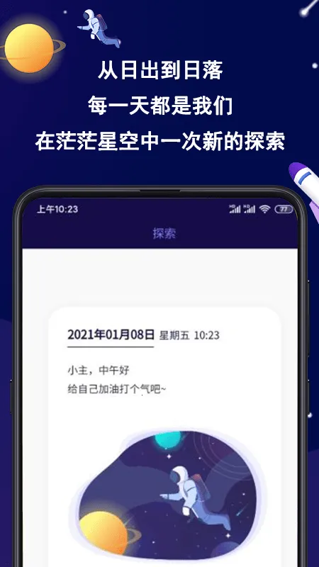 沉浸式星空主题界面独特,以浩瀚宇宙为灵感,有多款星空背景与动态特效,随心切换昼夜模式,记录仪式感满满。