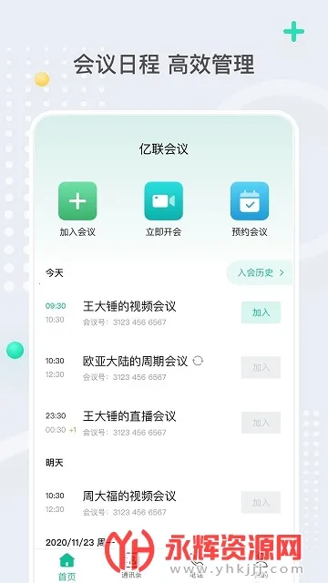 它的优势明显,全球99%区域服务,智能选路就近接入。操作简单,无需专人管理就能轻松开启多方会议。视频画质超清晰,主辅流都是1080P超清,音频高保真。个人用户免费注册,升级企业可享50方会议服务。使用起来也方便,登录后,首页能加入、立即开或预约会议;通讯录可管理联系人、邀请同事;通话能点对点呼叫;“我的”里面能设置企业、个人资料等。不管是网络连接问题还是设备配置问题,都有对应的解决办法。总之,亿联会议能满足你各种会议需求,让沟通更高效。