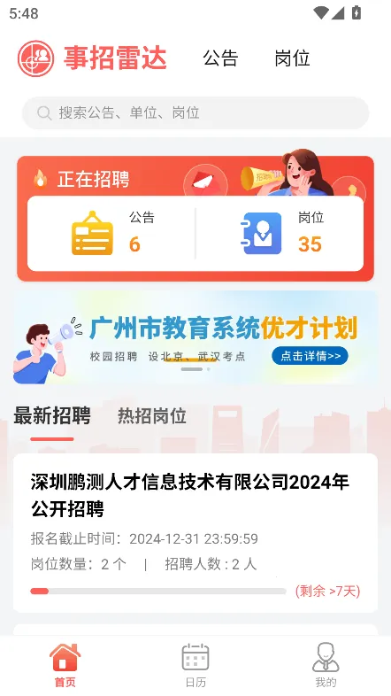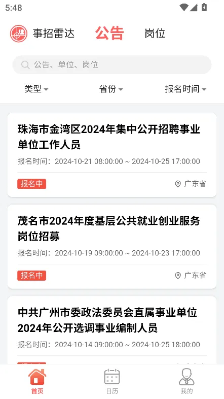 事招雷达最新手机版是专为考事业编制用户打造的一站式服务平台。有在线报名、拍照传附件等功能,能精准匹配岗位,提供个性化计划等。界面简洁,信息全且更新及时,助用户高效备考、顺利报名,找到理想岗位。