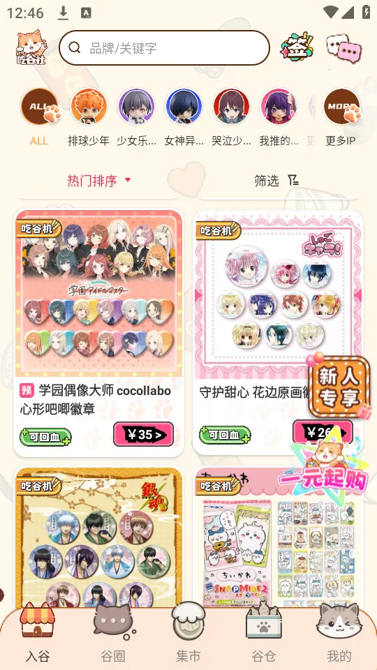 欧气吃谷社2025官方最新版是专为二次元爱好者打造的购物平台,提供丰富正版动漫游戏周边,有手办立牌等。支持多种购买形式,含抽卡扭蛋,可置换商品,还有新人福利,满足收藏需求,购物便捷安全。