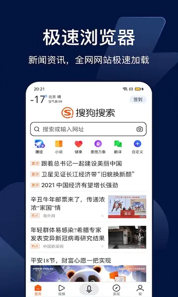如果你想从搜狗开始上网,搜狗搜索引擎是个不错的选择。它功能全面,能满足多种需求。语音搜索超方便,说话就能搜,还有即时播报,支持一键翻译,拍照搜索也很便捷。界面设计全新升级,短视频丰富多样,发现页功能更完善。不仅能提供正版热门小说资源,支持全书离线下载,阅读时还能累积积分兑换奖励。而且集成先进语音技术,新闻资讯与网络小说都支持全文语音朗读,多种音色可选,离线播放能节省流量。它还能收藏网页,开启夜间模式。在这个搜索引擎里,无论是查找资料、看小说,还是获取各类信息,都能轻松实现,让你的上网体验更加流畅、高效,精准找到你所需,就从搜狗开始上网吧。