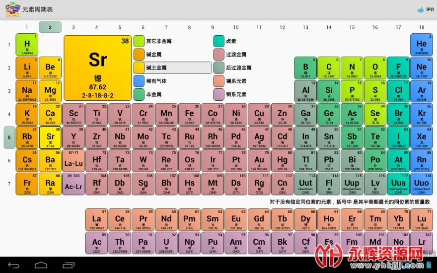 这是一款化学元素查询软件,对化学学习帮助极大。它以国际纯粹与应用化学联合会认可的长式周期表为核心,启动界面就能看到整个周期表。除了元素周期表,还能使用溶解性表等表格。点击任意元素,信息会不断更新,多数元素还有图像展示。软件优势众多,采用自研字体精准显示未收录元素名称;内置强大图形交互引擎,操作便捷;标识元素中文拼音,点击可听标准发音,实现沉浸式学习;提供丰富百科信息,涵盖元素多方面内容;收录多达5500个同位素详细信息。此外,它还具有小巧易用、功能强大、加载速度快、数据准确全面等优点,是化学学习的得力工具。
