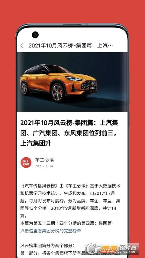 如果你想了解9月1日起私家车管理的5项新政,车主必读这款软件就能帮到你。它集成了丰富汽车资讯和专业知识,功能超多样还持续更新。这里有上千家内容提供商的合作成果,百万条汽车讯息,能一站式满足你获取资讯的需求。界面设计优雅,阅读体验流畅。还能通过社交平台一键分享精彩内容。而且免登录就能阅读全文。它与超1000家内容平台合作,资讯丰富实用。分享功能齐全,界面简洁无需注册。在这能轻松获取所有汽车自媒体资讯,第一时间掌握行业优质新闻。让你快速了解汽车动态,比如私家车管理新政等重要消息,帮你更好地了解和管理爱车,轻松成为汽车领域小专家,赶紧来下载体验吧。