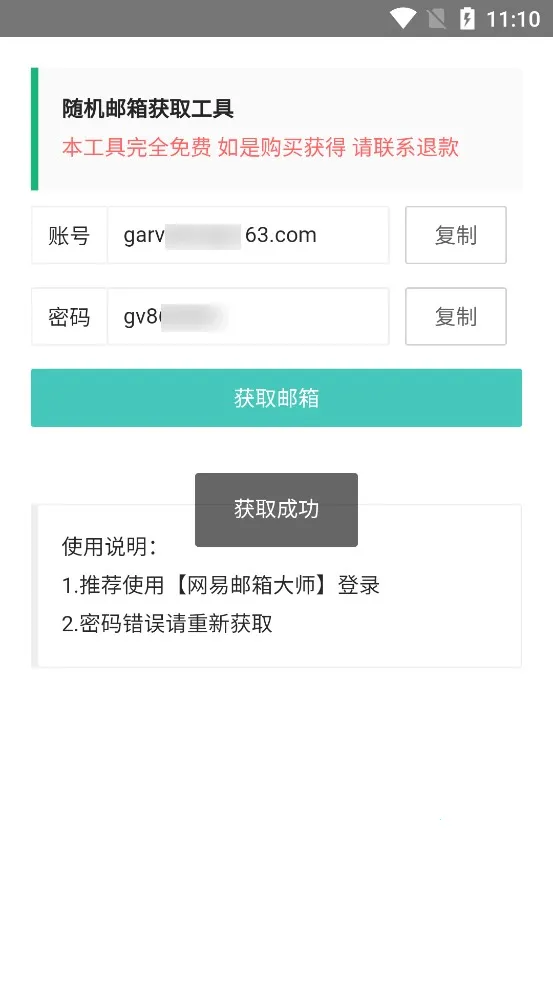 高效便捷:操作非常简单,用户只需轻松几步即可获得一个随机的邮箱账号。