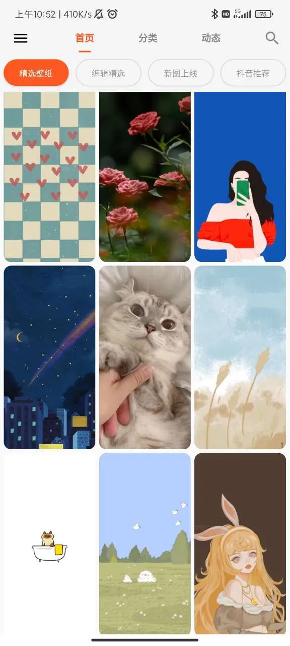 想给手机换上酷炫又个性的壁纸?那“wallpaper壁纸屋”绝对能满足你!它是一款超棒的手机壁纸软件,每日海量更新高清壁纸,涵盖自然美景、创意设计、动漫游戏、娱乐明星、豪车萌宠等各种主题,还有超精致的动态壁纸,让你的手机瞬间充满创意。这里有上百种主题分类,不管你是啥喜好,都能轻松找到心仪壁纸。操作超简单,一键就能收藏喜欢的壁纸,随时随地随心换。还能一键分享到朋友圈,晒出你的心动瞬间。它来源广泛,适配各种机型,没有广告也没过多权限要求,完全免费无水印,能让你的手机屏幕生动又清晰,轻松打造个性化桌面,方便又高效,赶紧试试吧!