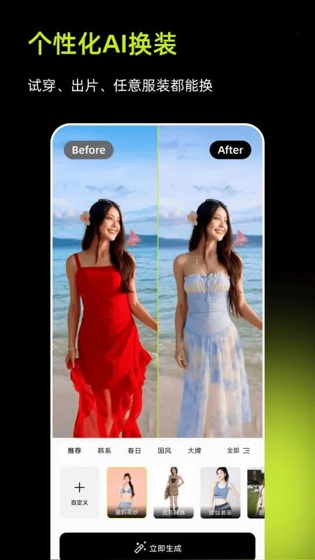 妙图AI最新手机版优势显著。智能修图技术自动识别画面要素,推荐专业优化方案。界面简洁直观,无修图经验者也能快速上手。提供多样自定义选项与创意工具,可依个人审美灵活调整,实现独特效果。自然处理算法在保持真实质感的同时智能优化,避免过度修饰失真。其智能抠图工具能精确处理复杂边缘,背景替换功能有大量精美模板,虚拟换装功能时尚且适配身材,特效资源持续更新,能很好满足用户创作与编辑需求。