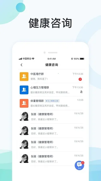 2. 健康咨询便捷:线上通过健康管理群与健康管家及时沟通,随时解决健康问题。