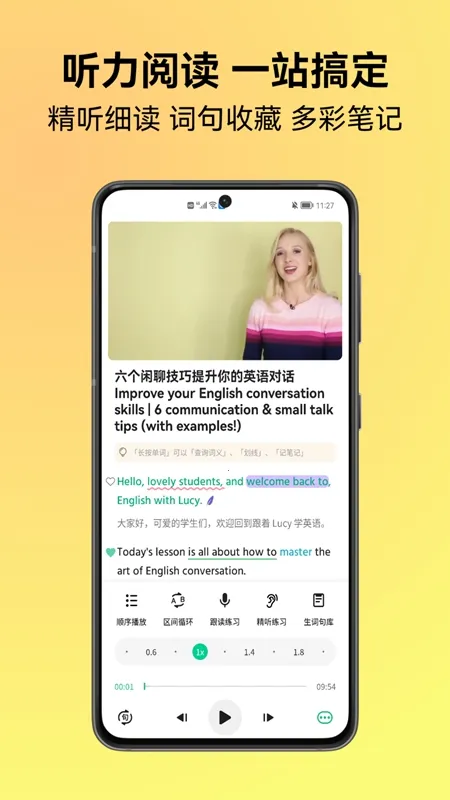 丰富资源:内置超过10万的听力材料、有声书和视频,覆盖从英语启蒙到职场商务的各个阶段,助力学员更高效地提升英语水平。