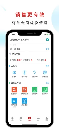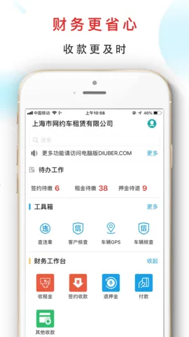 1. 多角色协作轻松管理:车管、财务、销售等多角色工作台,能轻松管理车辆、客户、财务等所有信息,还有每日代办事项、批量查违章、自动催交租等几十项效能提升工具,解决员工协作问题,提高工作效率。