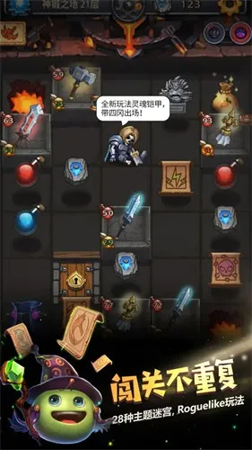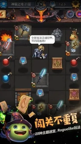 这是一款冒险策略手游,以Roguelike玩法为核心。玩家每次进入迷宫都从初始状态开始,生存依赖策略,要灵活搭配装备和成长路线。游戏画面精美Q萌,角色生动,带来独特视觉体验。