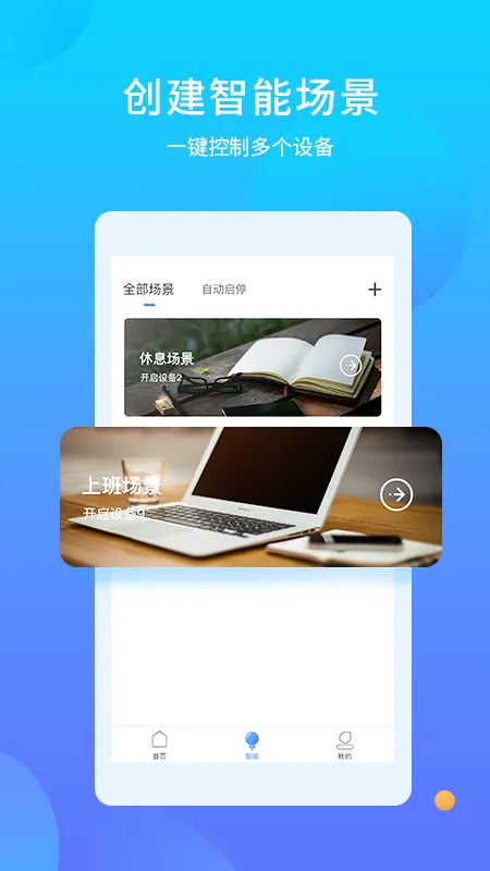 个性定制场景:可依据自身使用喜好,定制专属的个性化智能场景,一键就能控制多个设备联动。