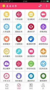 星座运势是一款星座测算软件,能查询十二星座信息、资讯,有匹配度和性格分析。含心理测试、周公解梦、指纹算命等特色功能,可解析每日、周、月运势,界面简洁易上手,支持个性化定制。