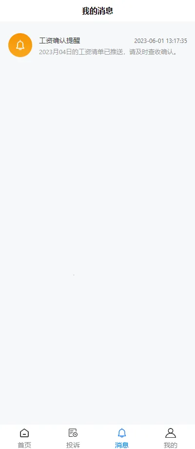 工资发放提醒贴心:工资发放后实时推送消息,劳动者能及时知晓工资到账情况,方便又安心。