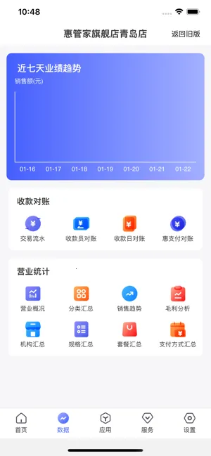 惠管家门店通是一款助力门店经营管理的软件。它能让门店管理更轻松,不受地点时间限制,一键完成繁琐工作。会员管理全面,多维度掌握会员动态。业务数据智能,多维度报表智能分析,辅助轻松决策。门店营销丰富,多元化玩法和移动设置提高业绩收入。操作简单易上手,初次使用也能顺利开展业务。详细的数据和图表能帮用户了解盈亏率,数据全统计且分类整理。它还支持商品定价改价、设置收款方式、修改套餐等,能查看店铺所有业绩情况,是门店经营管理的得力助手。