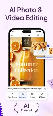 4. AI 创作强大:可借助 AI 创建吸引人的文案、视觉效果,还有 AI 徽标生成器、AI 图像生成器等,专业编辑变得简单。