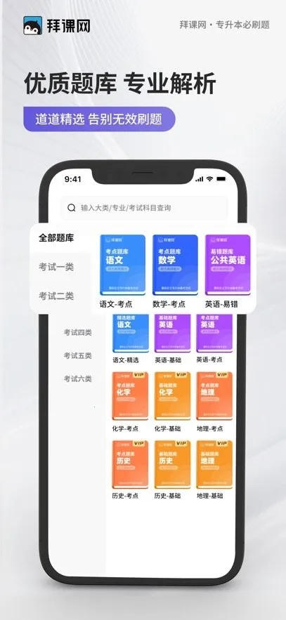 全科目题库覆盖,涵盖语文、数学、英语、职业适应性测试等单招核心科目,题目类型丰富,收录全国各省份单招真题及模拟题,支持按地区、科目、题型筛选,满足不同考生差异化需求。