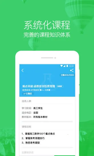 这里有精选重点学科课程,像春季班、暑期班、秋季班、寒假班等系统课,能帮孩子构建完善知识体系。还有名师直播互动,孩子可以实时提问解答。一对一辅导能针对性解决问题。精准学习分析通过大数据总结学习情况,让家长和孩子了解学习效果。免费学习资料丰富,像微课、学霸说、高考资讯等,下课也能充实学习。