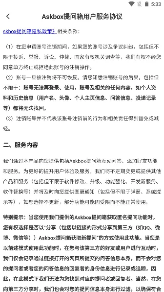 Askbox提问箱安卓版是实用生活软件,支持匿名提问。有个性化推荐等功能,界面简单,用法便捷。亮点包括匿名社交、丰富版面、数据分析及自动回答等,能满足多样提问需求,提升互动效率。