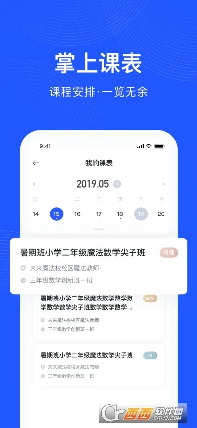 未来魔法校老师端是支持双师 AI 和面授课堂的教师移动端。能随时随地查看课表、备课批改作业等。有云学习平台、商城、学校管理等功能,课程资源丰富,功能众多,与 Web 端同步,还有多种优势及更新内容。