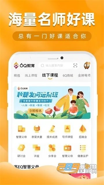 6Q超级爸妈是多品类家庭教育平台,涵盖亲子教育等多板块。有丰富课程、多样形式,大咖云集。提供线上线下服务,能提升家长能力,更新内容不断优化,是助力家庭教育的实用软件。