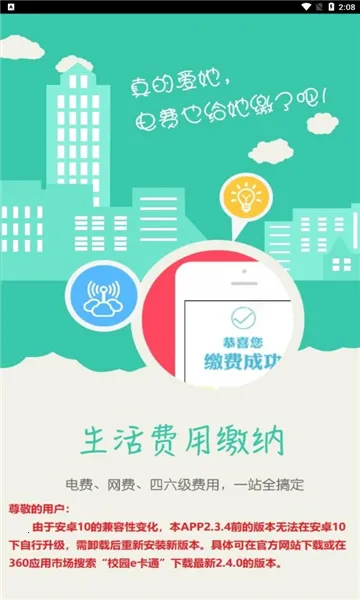 校园e卡通是一款实用的校园服务软件,为学生提供了便捷的校园生活体验。它涵盖了丰富的功能,如自助查询、个人信息管理、圈存缴费等。通过它,学生可以随时随地充值饭卡,无需再到食堂排队;线上缴费也十分方便,即使停电也能轻松完成电费缴纳。此外,还能查询学校的各种信息,如教室使用情况、图书馆书籍借阅情况等。软件操作简单,界面简洁,易于上手。同时,它还具有安全保障,采用学号加密码登录方式,保护用户账户安全。总的来说,校园e卡通为学生的校园生活带来了极大的便利,是一款值得推荐的校园服务软件。