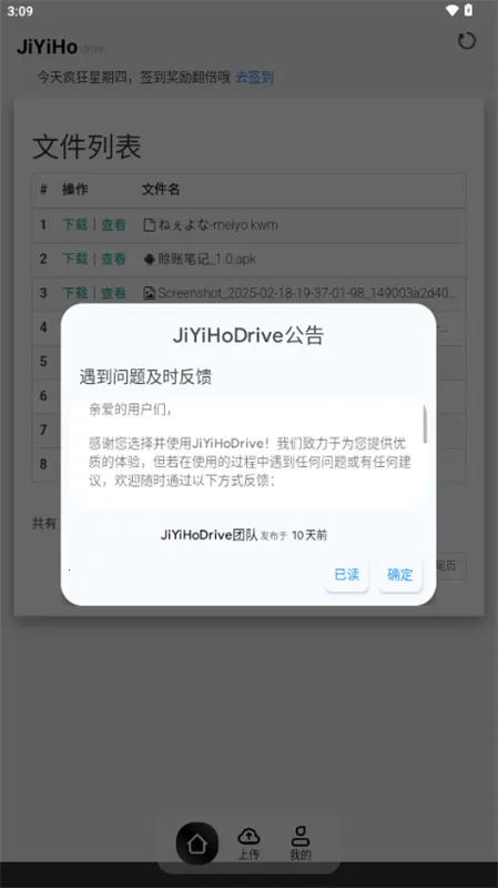 JiYiHo云盘2025最新版本是一款功能强大的云存储软件,主打安全高效。支持多格式文件上传下载,自动分类管理,传输稳定,多重加密保护隐私,还提供多种存储方案,适用于个人、团队及开发者。