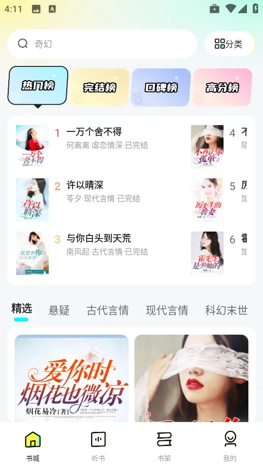 1. 海量正版资源,类型丰富多样,涵盖都市、玄幻、言情、武侠、科幻等多种类型,满足各类读者需求。