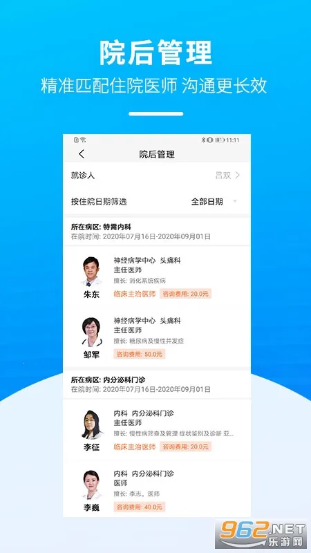 支持视频复诊、图文随访,患者能与医生在线沟通,享受高效便捷的问诊服务。