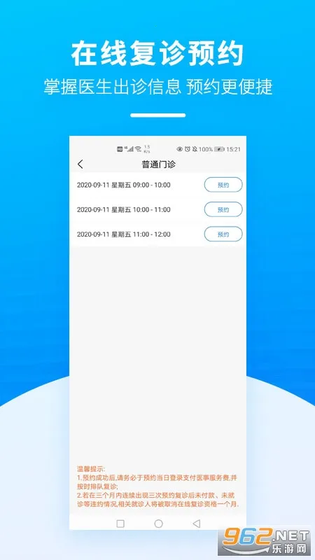 便捷预约挂号,可选择医生和就诊时间,还能在医院自助机上挂号,轻松搞定就诊安排。