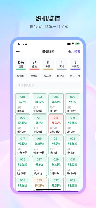 这款专为纺织厂打造的软件,能助力管理者实时掌握工厂生产状况。通过自动统计分析模块,可快速获取织机工作数据与产量表现,数据清晰直观,为决策提供高效依据。