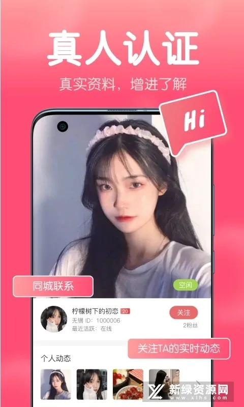 真实认证是亮点。全部用户经过实名认证注册,照片即真人,视频认证、人工审核打造真实交友平台,告别虚假社交,让你放心交友。