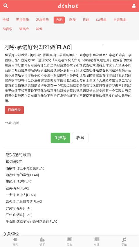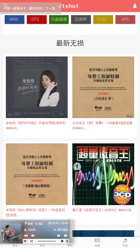 dtshot无损音乐网是个超棒的音乐资源平台。它有海量无损音乐,涵盖华语、欧美、日韩等语种,超10万首无损音轨任你挑。支持多种音质,像FLAC、24bit、96kHz、DSD等,新碟上线快。智能搜索超厉害,歌手、专辑、ISRC编码多维度检索,输入关键词秒出结果。每张专辑都有完整音乐信息,包括封面、内页、歌词本和CUE分轨文件,部分稀缺资源还有额外珍贵内容。提供百度网盘、115网盘直链下载三通道,满带宽下载速度稳定在5MB/s以上,资源分卷压缩验证码解压,每日更新维护失效链。这里专注无损音质,拒绝有损格式,发烧友社区活跃,能交流分享。跨平台访问,多端适配,手机端下载也便捷。有了它,找高品质无损音乐超方便,轻松满足你对音乐的各种需求。