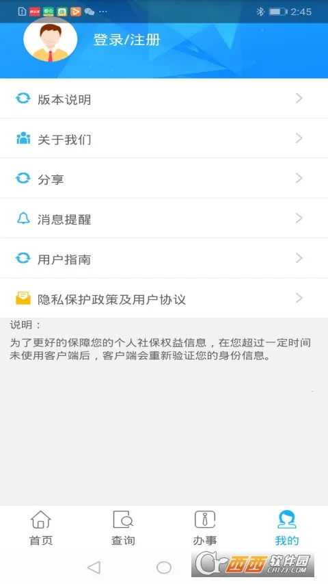 多样业务办理:提供缴纳社保费用功能,支持在线支付;能办理社保转移手续;社保医疗方面可查询预约挂号、住院记录、门诊记录等服务。
