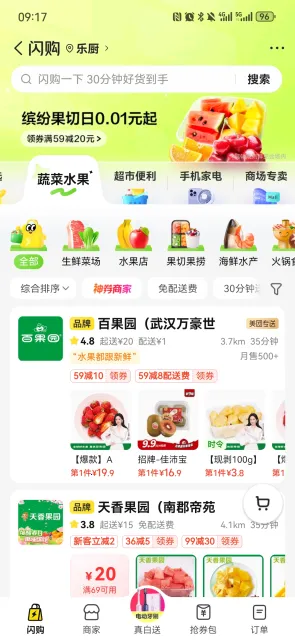 配送方面,采用定向即时配送,骑手优先从闪电仓取货,平均30分钟送达,效率极高。入驻商家超百万家,且严格审核资质,保障商品新鲜正品。平台活动丰富,新用户首单立减、限时秒杀等频繁,还有会员免配送费权益。