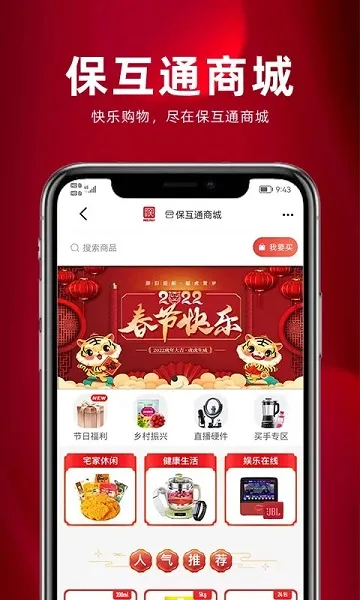 保互通app是中国人保旗下的一款生活服务软件,功能超强大!它以第三方支付结算体系为起点,整合了集团内外部金融产品资源,实现线上交易支付结算,打造一站式综合平台。软件特色众多,比如有实物商城,能随心购物;支持人保钱包充值提现、寿险保单支付等。亮点也不少,像可抢购商品,购买多种理财产品,绑定银行卡查余额,查看附近智慧停车位置,还能在线缴费。优势更是明显,查保单和权益便捷,三步搞定保单借款,有多种保险任您挑选,掌上赔自助申请理赔轻松,还有专属服务经理等。另外,它还能查工资,分享链接,解绑银行卡,换手机号等。不管是购物支付,还是处理金融事务,保互通app都能帮您轻松解决,带来便捷生活,赶紧下载体验吧!