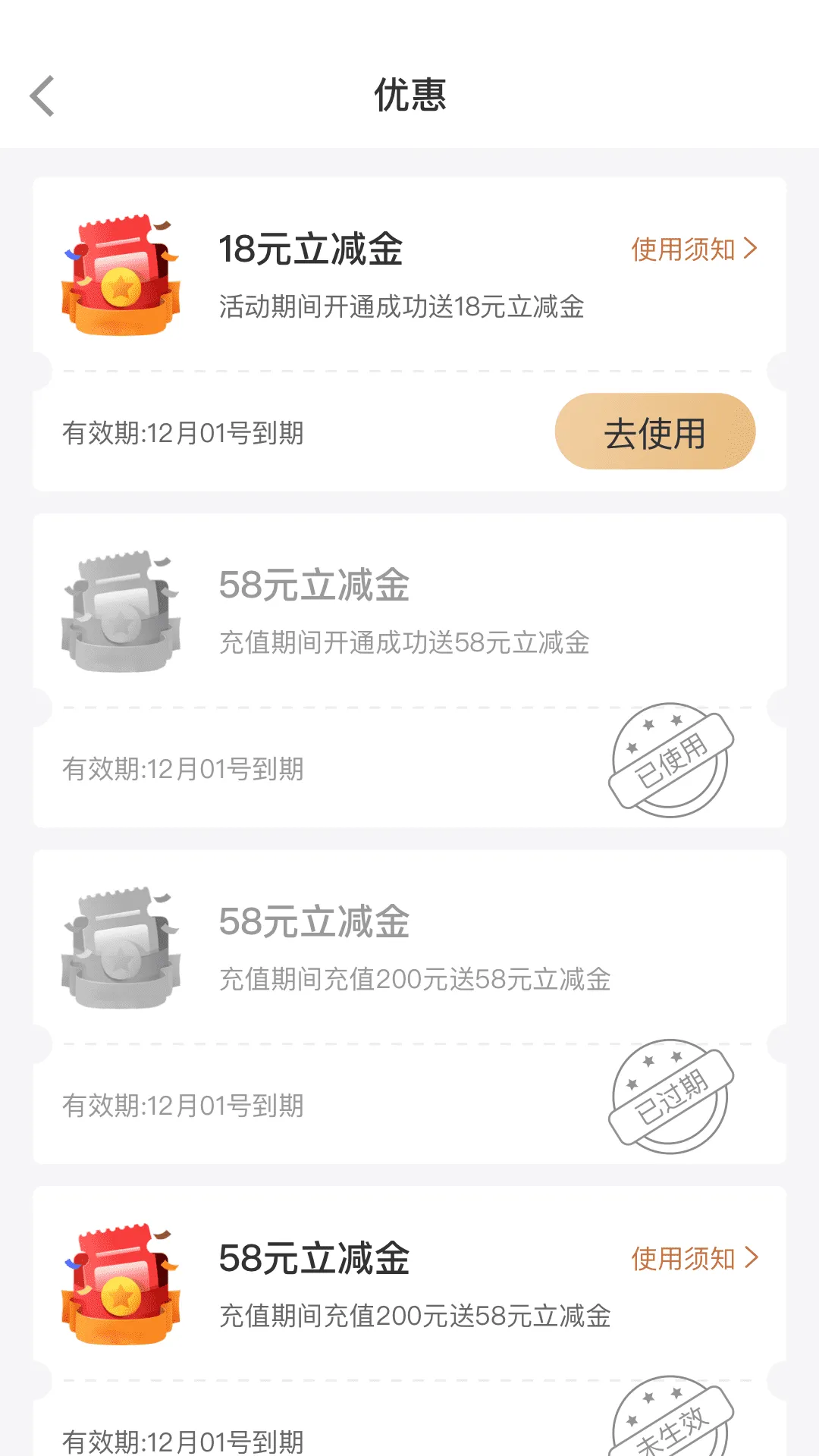 4. 便捷消费体验:开启先用后付模式,消费后出示二维码就能快速完成在线支付,还能轻松管理卡券包,留意即将过期的优惠券。