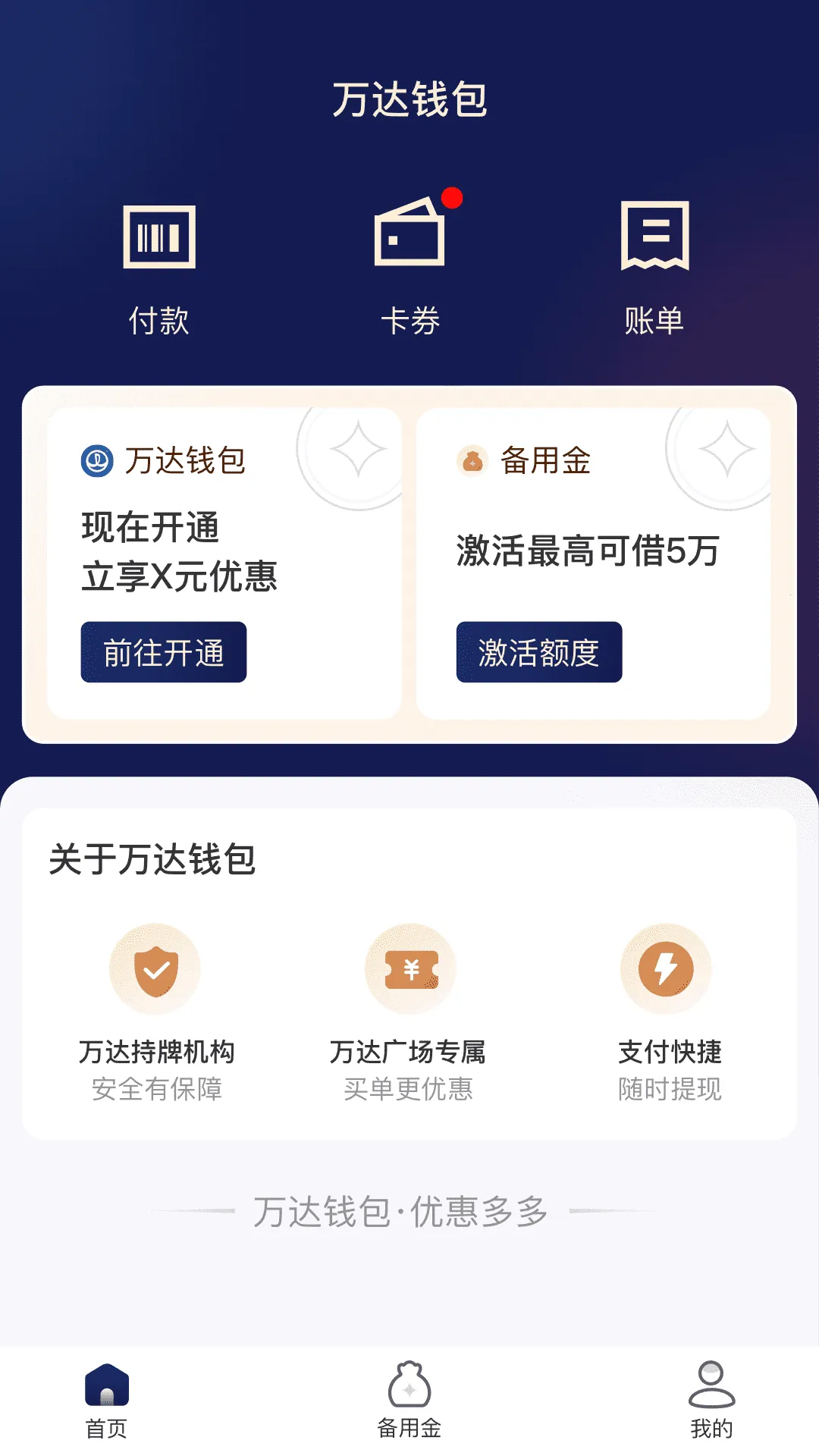 万达钱包2026官方正版是万达集团打造的平台,能获取万达购物广场信息及门店,支持先用后付、电影购票等。提供优惠券,可扫码付款、管理卡券包。有更多优惠福利,精准定位,还能积分买单、参与积分活动。