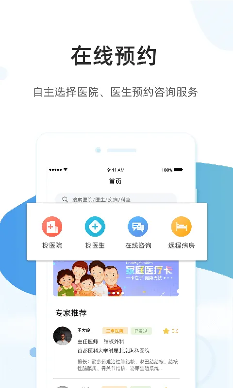 3. 优质医生资源丰富:汇集各大医院任职医生,海量优质医生资源中可按姓名精确查找,还有知名专家提供专业康复建议。