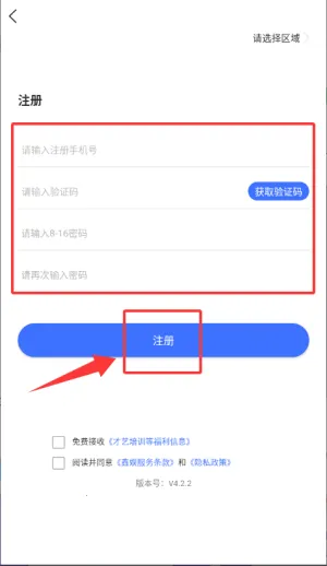 1、启动鑫娱应用,确认服务条款及隐私政策后进入。