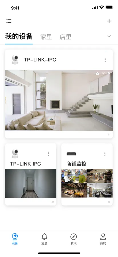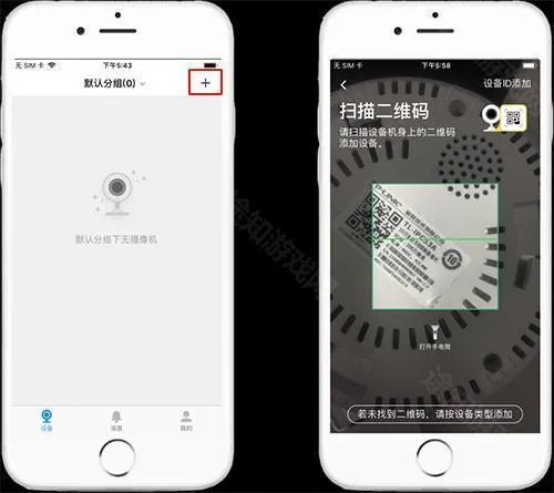 复位摄像头,使其指示灯变为红绿交替闪烁。登录TP-LINK安防APP,点击设备主界面右上角【+】,扫描摄像头背面的二维码: