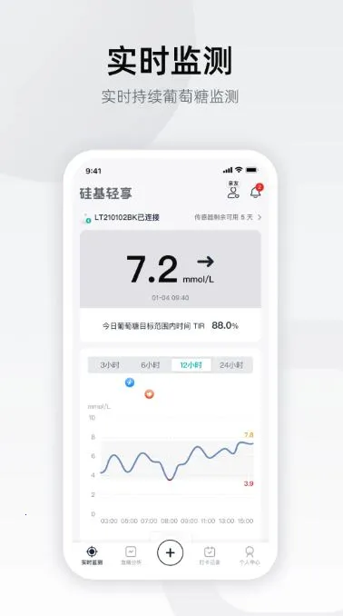 1. 实时连续监测血糖,确保血糖实时控制,数据以可视化形式呈现,方便随时查看。
