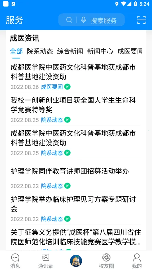移动校园门户:掌上成医 APP 与校内各主要信息系统融合,提供协同办公、信息公开、工资查询、课程表、图书借阅等信息化应用服务功能。