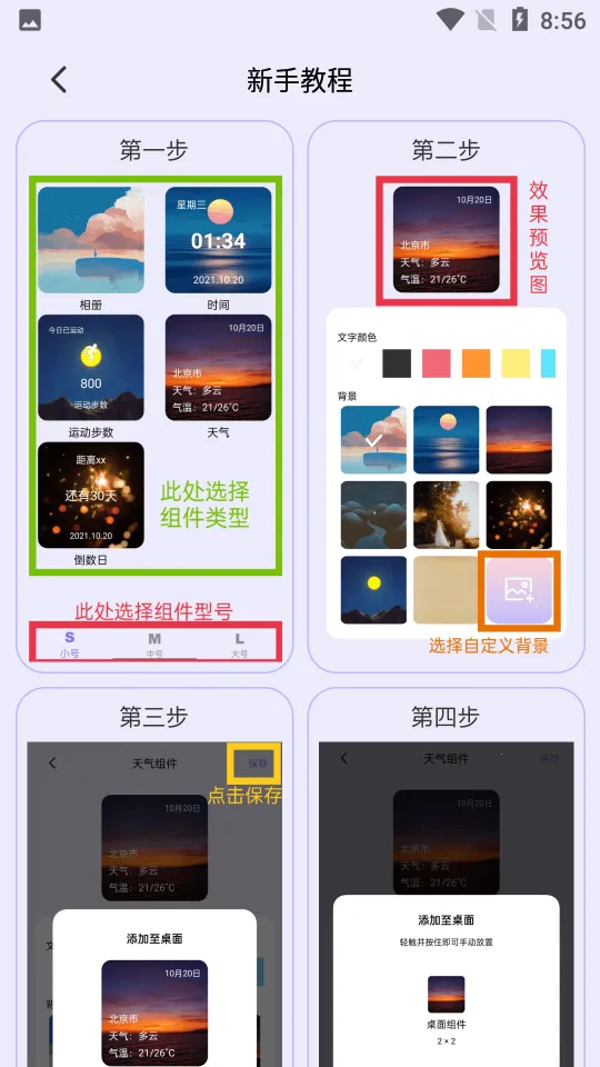 万物小组件最新手机版是一款便捷桌面编辑软件,能添加组件、壁纸,设置时间天气等。有事件、步数等插件,支持自定义编辑,操作简单,涵盖多种工具组件,可自由选择添加,美化桌面,满足多样需求。