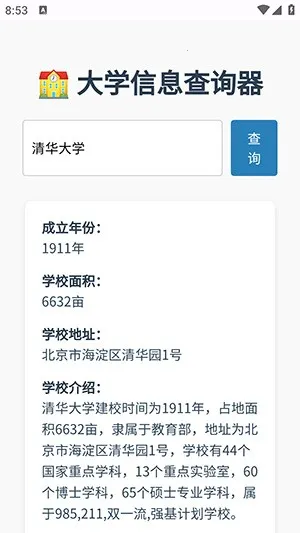 你是否想一键查询大学信息和成绩?有这样一款软件就能轻松帮你搞定!它能让你快速知晓全国各地大学的详细信息,只要输入学校名字,成立时间、地址、介绍等都能马上查到。这软件完全免费,学生和家长都能用。它覆盖2800余所高校和1300多个专业信息,支持按分数查院校、按选科查专业。还能还原填报流程,预测录取风险,通过性格兴趣测评推荐适配专业。有专家在线答疑,解答你的报考疑问。软件功能超丰富,涵盖高校与专业完整信息,能查招生资讯、历年分数线、师资力量及就业前景等。设有校友圈和校友录,让你了解真实校园日常。能根据考生信息生成详细报告,提示专业调剂等风险。整合了招生计划、专业排名等众多信息,部分支持高校多维度对比,还会结合分数给报考建议,用起来超方便!