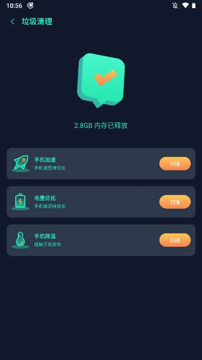 这款清理软件表现出色。它能全面扫描手机,免费清理各类垃圾,包括系统缓存、应用缓存及临时文件等,高效释放存储空间,提升设备运行流畅度。一键内存优化可关闭后台进程,大幅提升设备速度与响应效率。能便捷卸载闲置应用,智能管理权限设置保护隐私。其智能释放存储空间效果显著,采用极简设计理念,操作轻松。基础清理功能免费无广告,体验纯净专注。还能实时监测电池状态,智能提供省电模式与电量管理,延长续航。智能禁用非必要应用自启动,加快开机速度。一键清除顽固垃圾文件,优化管理手机电池,提高手机寿命,是一款非常实用的手机清理优化工具。