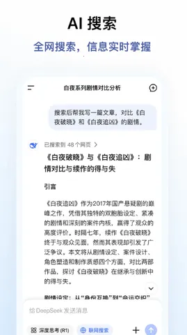 深度求索DeepSeek下载具有诸多核心优势。它是专为解答人工智能相关知识疑问设计的AI对话软件。用户提问能快速获详尽答案,自定义接口可免费直接使用,便捷性极高。能精准推荐内容,自动生成高质量文章,高效解答咨询。支持多语言,可解决复杂理科难题,还能梳理文档重点。能精准理解生成自然语言,提供个性化对话体验,无论是日常还是专业问题,都能迅速提供解决方案,满足多样化需求。