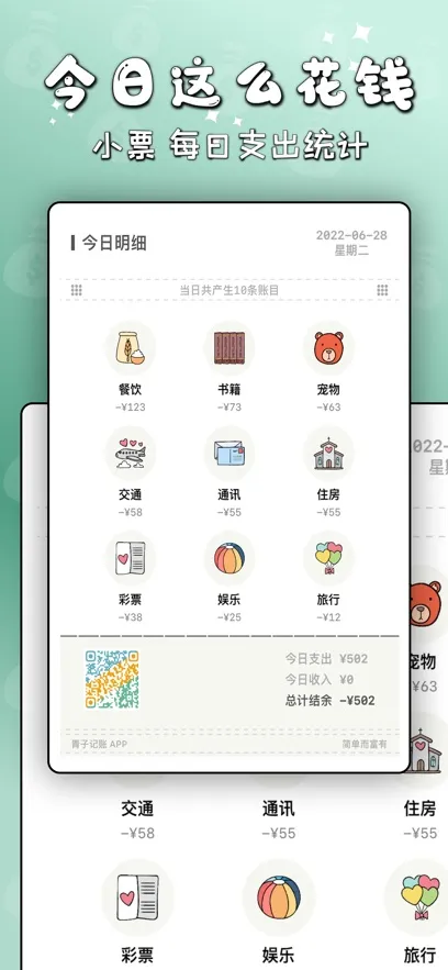 青子记账是清新简便的记账应用,专注记录日常收支。操作简洁,能快速记账、分类备注,支持多人共享、情景账本分类、统计图表展示等。无复杂附加功能,界面清爽,适用于个人、家庭、生意等多种记账场景。