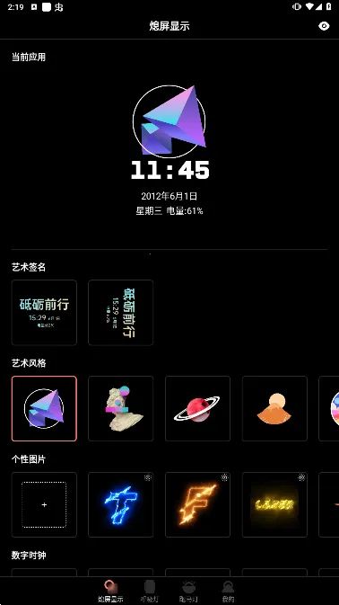 熄屏显示app免费版专为追求个性化的智能手机用户打造。可将手机屏幕变艺术品,支持自定义文字、添加呼吸灯效果。有多种熄屏显示效果,界面简洁操作流畅,能让手机息屏时充满活力,彰显独特品味。