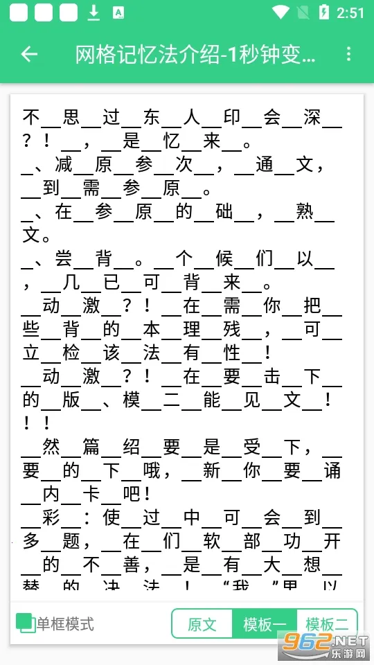 这款软件采用科学记忆方法,能有效提升背诵效率。它将文章弄成两个版本,部分内容用x代替,通过先记再补、两个版本互相填充缺漏的方式,强化记忆效果。使用时,先导入文章,保存后自动隐藏部分内容形成填空素材,还支持自定义隐藏间隔参数。其核心功能包括智能扣字生成、填空记忆训练、高效记忆强化和全文整合复习。软件特色众多,有科学记忆逻辑、丰富学习资源、简易操作流程等。亮点在于专注记忆强化、降低背诵难度、涵盖重难点解析。优势有个性化定制、丰富资源储备、科学复习规划。用户反馈用它背书效果好,读顺几遍就能背出段落。新版本不断更新,增加了如自定义抠字模式等功能,能满足不同学习需求,助力用户更好地记忆文章诗词。