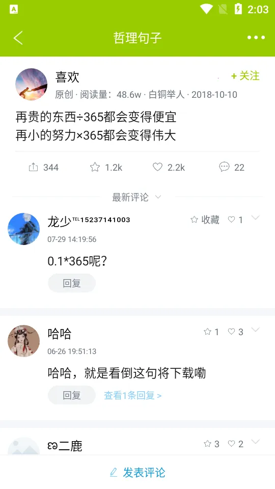 微句app是一款超棒的阅读软件。它能让你轻松分享和交流心得感悟,像日记、读书笔记、影视评论、育儿心得等等都能随时记录展示,还能交流作文素材和精品推荐。这里有爱情、励志、伤感等各种类型的短句,满足你的不同需求。一键关注他人就能获取更新提醒,不会错过任何新句子。支持阅读系统通知消息,还能相互聊天。每日有推荐和最新句子,能查看关注对象动态。创作阅读可以比智慧,每日排行一决高下。你能随时新建信息发布句子,自定义内容。界面简洁,操作顺畅,让你在这尽情释放自我。无论是想记录生活,还是找志同道合的朋友交流,微句app都能满足你,快来试试吧!